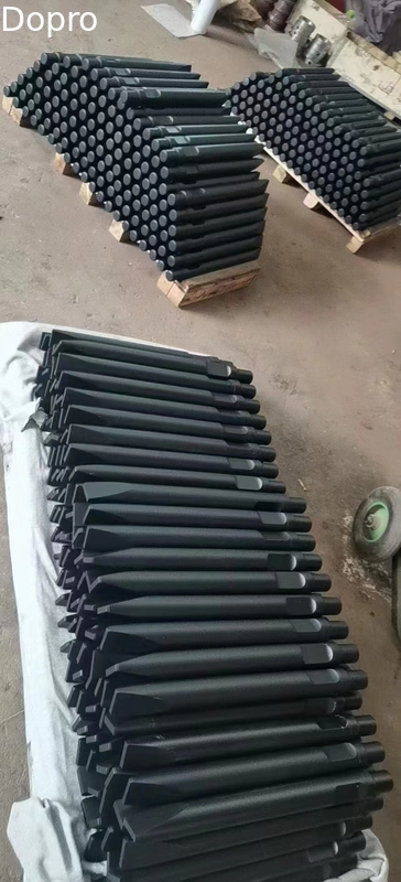 Ujung kerja mesin pemecah excavator dilengkapi dengan ujung baja yang dikeraskan, juga dikenal sebagai bit alat atau titik moil.Ujung ini bertanggung jawab untuk memberikan kekuatan dampak untuk menembus bahan keras seperti beton, batu, atau aspal.